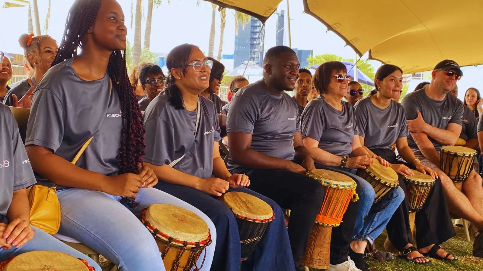 We focus on creating an environment where your team can relax, participate, and connect through rhythm — no pressure, just energy and involvement.